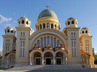 Τοπόσημο θρησκευτικού χαρακτήρα ο Νέος Ιερός Ναός του Αγίου Ανδρέα, ο οποίος θεμελιώθηκε την 1η Ιουνίου 1908 και για την κατασκευή του είχε προκηρυχθεί αρχιτεκτονικός διαγωνισμός στον οποίο προκρίθηκε ο Γάλλος Αρχιτέκτονος Αιμίλιος Ρομπέρ. Ωστόσο τα σχέδιά του προκάλεσαν αντιδράσεις και σφοδρή κριτική γιατί θεωρήθηκε ότι δεν ανταποκρίνεται στη ορθόδοξη Βυζαντινή παράδοση. Θεωρείται ο μεγαλύτερος ναός της Ελλάδας. Σ΄αυτόν φυλάσσονται η Κάρα του Αγίου Ανδρέα καθώς και ο Σταυρός του μαρτυρίου του.