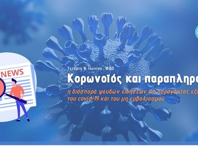 Η Περιφέρεια Δυτικής Ελλάδας σε συνεργασία με το ΙΜΕΔΕ -Ινστιτούτο Μελετών & Ερευνών Δυτικής Ελλάδας, πραγματοποιούν μεγάλη εξ’ αποστάσεως ενημερωτική Hμερίδα (webinar) για όλους τους ενδιαφερόμενους με θέμα: «Κορωνοϊός και παραπληροφόρηση: η διασπορά ψευδών ειδήσεων ως παράγοντας εξάπλωσης του covid-19 και του μη εμβολιασμού».