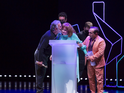 Στην απονομή των κινηματογραφικών βραβείων Ίρις 2021 στο Θέατρο Άλσος στην Αθήνα όπου η Μαίρη Χρονοπούλου τιμήθηκε για το σύνολο της καριέρας της