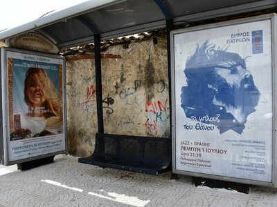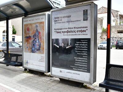 Σε στάσεις λεωφορείων και κομβικά σημεία της πόλης έχουν τοποθετηθεί διαφημιστικά μπάνερ και αφίσες