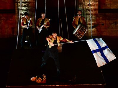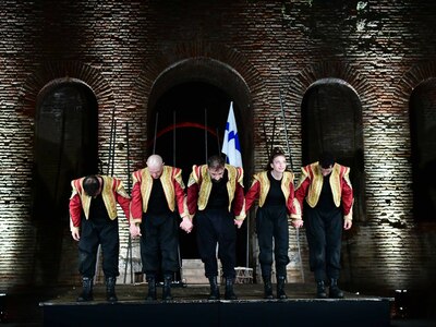 Με την παράσταση με τίτλο «Ελευθερία, ο ύμνος των Ελλήνων», από το ευέλικτο σχήμα Άρμα Θέσπιδος του ΔΗΠΕΘΕ της Πάτρας, ήρθαν στο προσκήνιο συγκλονιστικές στιγμές, καθώς «ζωντάνεψαν» η αγωνία και το πάθος των ηρώων, οι μάχες σώμα με σώμα και η άρνηση στη συνθηκολόγηση, το προσκύνημα, τις δελεαστικές προτάσεις, την υποταγή στον τουρκικό ζυγό.