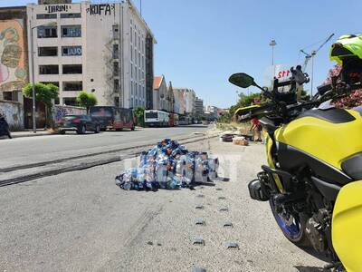 Τροχαίο σημειώθηκε πριν λίγο στην Όθωνος Αμαλίας και Νόρμαν στην Πάτρα. Σύμφωνα με τις πρώτες πληροφορίες από φορτηγάκι έπεσαν παλέτες με νερά και μπύρες με αποτέλεσμα να γλιστρήσει δίκυκλο που ακολουθούσε. Όπως λέει μιλώντας στο thebest.gr o oδηγός του δικύκλου έπεσαν παλέτες και από τα σπασμένα μπουκάλια γλίστρησε.
