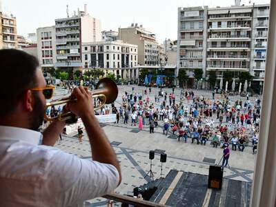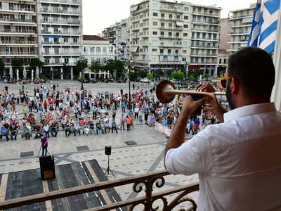 Ένα απρόσμενο δρώμενο περιελάμβανε η αποψινή συγκέντρωση της δημοτικής Αρχή της Πάτρας για την ανεργία που πραγματοποιήθηκε στην πλατεία Γεωργίου με ομιλητή τον Κώστα Πελετίδη. Κάποια στιγμή, σε μια κίνηση που προκάλεσε αίσθηση, ένα μουσικό βγήκε από το μπαλκόνι του θεάτρου «Απόλλων» και έπαιξε κορνέτο προς τέρψη των παρευρισκομένων.