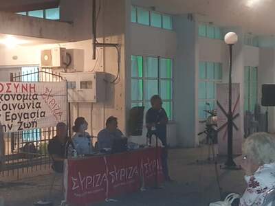 Την Τρίτη 13 Ιουλίου στο φιλόξενο χώρο του Πολιτιστικού Συλλόγου Παραλίας των Εργατικών Κατοικιών Εύας, οι Οργανώσεις Μελών Παραλίας και Βραχναιίκων του ΣΥΡΙΖΑ-Προοδευτική Συμμαχία, διοργάνωσαν ανοιχτή εκδήλωση-συζήτηση με θέμα «Η Απάντηση της Αριστεράς στην ανατροπή των εργασιακών κεκτημένων».