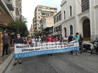 Συγκέντρωση διεκδίκησης άμεσων μέτρων στήριξης του Δημόσιου Συστήματος Υγείας και της προστασίας των εργαζομένων στους χώρους δουλειάς πραγματοποίησε απόψε Πέμπτη το Εργατικό Κέντρο Πάτρας.