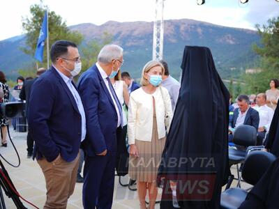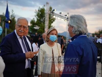 Στην συναυλία παραβρέθηκε και η κα Μαρίνα Μαρτίνου, συνοδευόμενη από τους συνεργάτες της, όπου την υποδέχθηκε θερμά ο Δήμαρχος Καλαβρύτων κος Αθανάσιος Παπαδόπουλος, εκφράζοντας την ευγνωμοσύνη όλων των Καλαβρυτινών για την σπάνια χειρονομία της οικογένειας αναφορικά με το Ηρώο Αγωνιστών του ’21, αλλά και την διαρκή στήριξή της, στην περιοχή μας. Ο κος Παπαδόπουλος συνόδευσε την κα Μαρτίνου και την ξενάγησε στον εμβληματικό λόφο των Καλαβρύτων, κάνοντας αναφορές στην ιστορία του μνημείου που αποτελεί το μοναδικό πανελλήνιο ηρώο για το 1821. Η κα Μαρτίνου, εντυπωσιάζοντας όλους τους παραβρισκόμενους με την εξαιρετική σεμνότητα και ευγένεια που εξέπεμπε, εξέφρασε την ικανοποίησή της για το αποτέλεσμα των εργασιών σε ένα μνημείο, παρακαταθήκη ιστορίας, τιμής και αναστοχασμού.