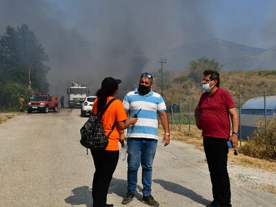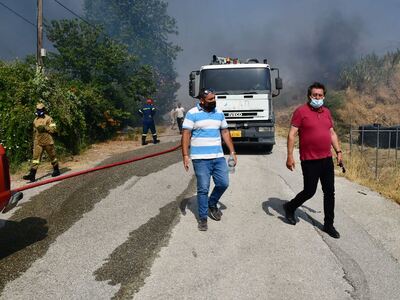 Μαζί με αντιδημάρχους και υπηρεσιακούς παράγοντες συντονίζουν το έργο των εργαζομένων στο Δήμο που με μηχανήματα έχουν ριχτεί στη μάχη με τη φωτιά