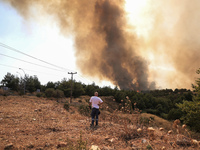 Οι φλόγες έφτασαν στα πρώτα σπίτια καθώς η πυρκαγιά πέρασε πάνω από τον δρόμο που χώριζε τα δέντρα από την κατοικημένη περιοχή. Ντόπιοι απομακρύνονται με τα αυτοκίνητά τους παίρνοντας μαζί τους μερικά πολύτιμα αντικείμενα. Αξιωματικοί με περιπολικά της ΕΛ.ΑΣ ζητούν από τους πολίτες να φύγουν, αναφέρει η lifo.gr