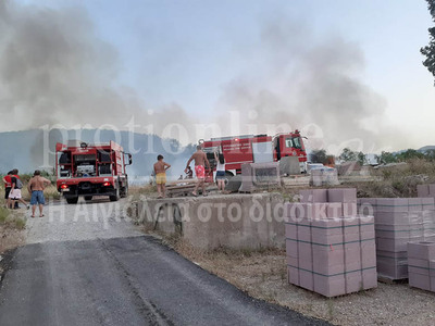 Στο σημείο βρίσκονται δύο οχήματα της Πυροσβεστικής με 6 άντρες καθώς και κάτοικοι της περιοχής, που επιχειρούν για την κατάσβεσή της.