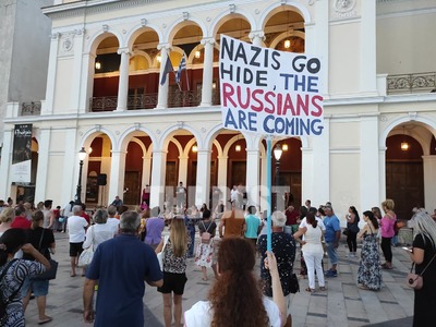 Αίσθηση μεταξύ άλλων προκαλεί το πανό με τις αναφορές στους Ναζί και τους Ρώσους.