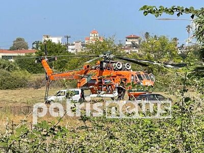 Το ελικόπτερο Erickson συνεχίζει να βρίσκεται καθηλωμένο σε οικόπεδο δίπλα στην Ε.Ο. Πύργου – Πατρών από χθες το απόγευμα, αφού παρουσίασε ζημιά ενώ επιχειρούσε στο μέτωπο της πυρκαγιάς στο Κολίρι.