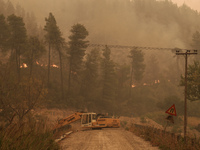 Στο χωριό Καματριάδες, το μεσημέρι, τα μεγάλα χωματουργικά μηχανήματα της Περιφέρειας φτιάχνουν αντιπυρικές ζώνες για να σταματήσουν τη φωτιά και δίπλα τους οι κάτοικοι με αλυσοπρίονα και μηχανήματα ρίχνουν τα δέντρα, έτσι ώστε αν φτάσει η φωτιά, τουλάχιστον να μην ανέβουν ψηλά οι φλόγες και κινηθούν με μεγαλύτερη ένταση και σε μεγαλύτερή απόσταση.