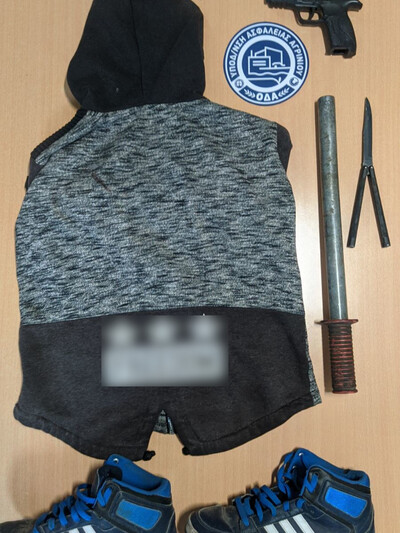 Σε έρευνες που πραγματοποίησαν οι αστυνομικοί της Υποδιεύθυνσης Ασφαλείας Αγρινίου, στην οικία και σε αυτοκίνητο του δράστη, βρήκαν και κατέσχεσαν ένα πλαστικό πιστόλι (απομίμηση), ένα πτυσσόμενο μαχαίρι, ένα αυτοσχέδιο γκλοπ, ένα βαμβάκι ποτισμένο με ηρωίνη και είδη ένδυσης.