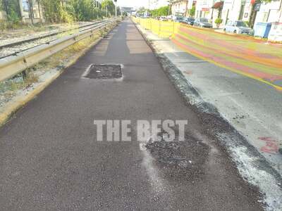 Πέραν των άλλων, διακρίνουμε στον υπό κατασκευή ποδηλατόδρομο, και τα εξής δύο: Μια σειρά από φρεάτια ομβρύων στην άκρη του δρόμου που δημιουργούν καμπυλότητες (κάτι που κάθε άλλο παρά αγαπούν τα ποδήλατα) και μια σειρά από καπάκια αποχέτευσης στο κέντρο του ποδηλατόδρομου, τα οποία δημιουργούν εξογκώματα που δεν τα λες και «απαλά μαξιλαράκια» για ανέμελους ποδηλάτες.