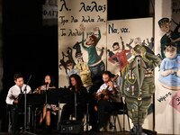 Στην παράσταση παίζεται ζωντανά μελοποιημένη ποίηση των, Βάρναλη, Λασκαράτου, Σουρή, Άμβλιχου , Πανά , Γιαλαμά σε πρωτότυπη μουσική.
