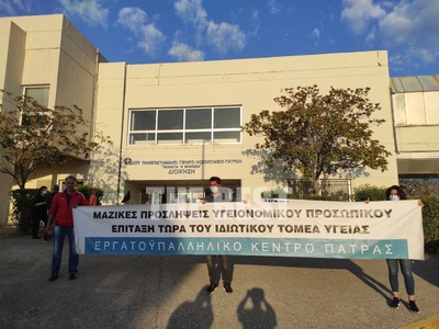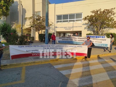 Διαμαρτυρία πραγματοποιήθηκε το απόγευμα της Τρίτης, 7 Σεπτεμβρίου, στον προαύλιο χώρο του Πανεπιστημιακού Νοσοκομείου Ρίου το Εργατικό Κέντρο Πάτρας. Ο λόγος της διαμαρτυρίας ήταν οι συνθήκες εργασίας των υγειονομικών υπαλλήλων και γενικότερα η προστασία του ΕΣΥ.
