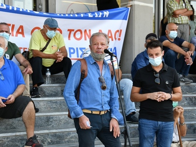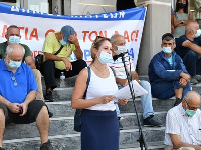 Στη συγκέντρωση απηύθυναν χαιρετισμό, ο Πρόεδρος του Εμπορικού και Εισαγωγικού Συλλόγου Πάτρας, Κώστας Ζαφειρόπουλος και το μέλος της Διοίκησης του Εργατικού Κέντρου Πάτρας, Άννα Πελεκούδα.