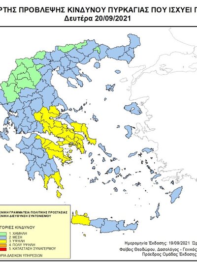 Σύμφωνα με τον Χάρτη Πρόβλεψης Κινδύνου, που ετοιμάζει η Πολιτική Προστασία, οι περιοχές που κινδυνεύουν για σήμερα αφού βρίσκονται στην κατηγορία 3 είναι οι: Αττική και Κύθηρα, Βοιωτία, Φθιώτιδα, Αργολίδα, Κορινθία, Χανιά, περιοχές της Εύβοιας, της Μαγνησίας, της Φωκίδας, της Αχαΐας, και της Λακωνίας.