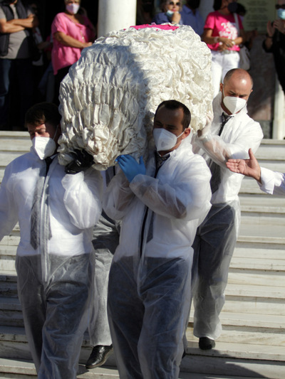 Παράκληση της οικογένειας ήταν να τηρηθούν όλα τα μέτρα που προβλέπει το υγειονομικό πρωτόκολλο της πανδημίας. Εντός του Ναού παρέστησαν ελάχιστοι άνθρωποι.