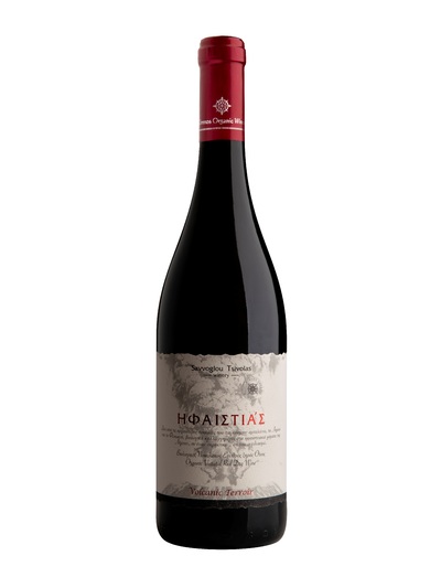 Ηφαιστίας Δύο από τις αρχαιότερες ποικιλίες του παγκόσμιου αμπελώνα. Η αγαπημένη ποικιλία του Αριστοτέλη, το Λημνιό, παντρεύεται το αιγαιοπελαγίτικο Φωκιανό, που καλλιεργείται βιολογικά στα χώματα της Λήμνου και δίνει το μοναδικό αυτό ζεστό κρασί με λαμπερό ρουμπινί χρώμα, αρώματα φρέσκων φρούτων και τανική επίγευση.