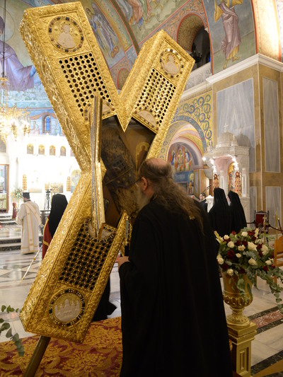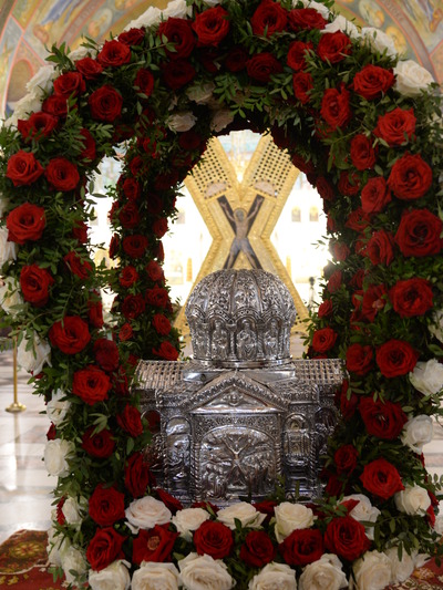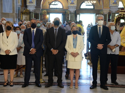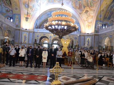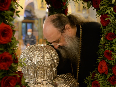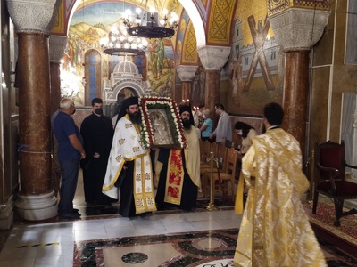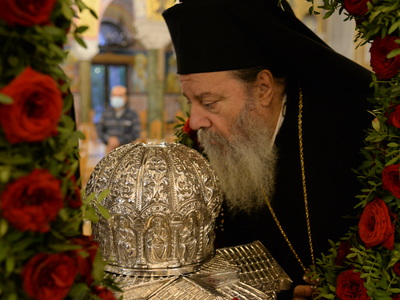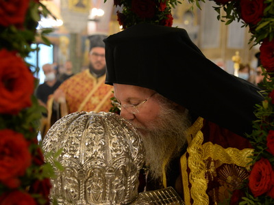 Την παραμονή τῆς ἑορτῆς, το Σάββατο 25/9/2021 στις 18.30, στόν μεγάλο Ἑσπερινό, χοροστάτησε και μίλησε ὁ Θεοφιλέστατος Ἐπίσκοπος Εὐκαρπίας (Οικουμενικού Πατριαρχείου) κ. Ἱερόθεος, Ἡγούμενος τῆς Πατριαρχικῆς Μονῆς τῆς Ἁγίας Εἱρήνης Χρυσοβαλάντου στήν Ἀστόρια τῆς Ἀμερικῆς (Ν. Υόρκη), ο οποίος με καταγωγή από το Θέρμο Αιτωλοακαρνανίας, για πολλά χρόνια λειτούργησε ως κληρικός της Ιεράς Μητροπόλεως Πατρών και πολλοί τον θυμούνται ως αρχιμανδρίτη να εκτελεί τα ιερατικά του καθήκοντα στην ενορία της Αγίας Τριάδας. Στην Ἱερά Ἀκολουθία συγχοροστάτησαν ο σεβασμιότατος Μητροπολίτης Πατρῶν κ.κ. Χρυσόστομος και ο Θεοφιλέστατος Ἐπίσκοπος Κερνίτσης κ. Χρύσανθος. Ανήμερα, την Κυριακή 26/9 τελέστηκε ἡ Θεία Λειτουργία, τῆς ὁποίας προέστη ο σεβασμιότατος Μητροπολίτης Πατρῶν κ.κ. Χρυσόστομος συλλειτουργούντων τῶν Θεοφιλεστάτων Ἐπισκόπων Εὐκαρπίας κ. Ἱεροθέου καί Κερνίτσης κ. Χρυσάνθου.