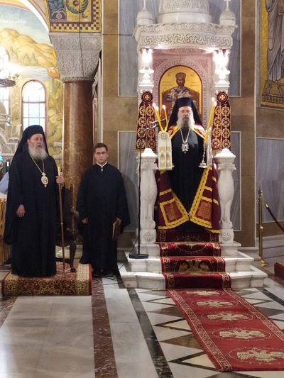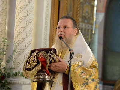 Παρέστη και συγχοροστάτησε στις εκδηλώσεις ο Επίσκοπος Ευκαρπίας, Ηγούμενος της Πατριαρχικῆς Μονής της Αγίας Ειρήνης Χρυσοβαλάντου στην Αστόρια, στη Ν. Υόρκης, Ιερόθεος Ζαχαρής