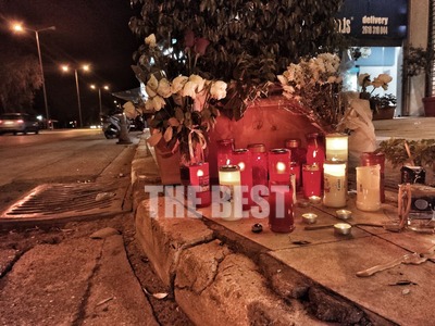 Λίγες ώρες αργότερα, το βράδυ της Τετάρτης, η οικογένεια του αλλά και φίλοι του βρέθηκαν στο σημείο που έγινε στο τραγικό δυστύχημα και έχασε τη ζωή του, αφήνοντας στην άσφαλτο κεράκια και λουλούδια στην μνήμη του.