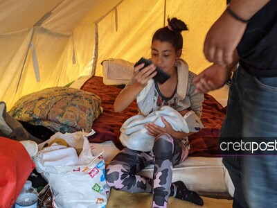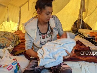Μία οικογένεια με μωρό μόλις έξι ημερών ζει στις σκηνές που έχουν στηθεί έξω από το Εκθεσιακό Κέντρο στο Αρκαλοχώρι μετά τον καταστρεπτικό σεισμό της Δευτέρας. Η οικογένειά του είχε έρθει από την Βουλγαρία για μία καλύτερη ζωή με την νεαρή μητέρα να φέρνει στη ζωή πριν έξι μέρες το μωρό της.