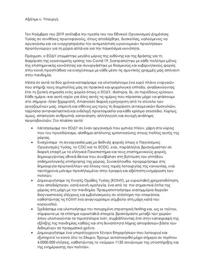 Θέλω να ευχαριστήσω από καρδιάς τους 2.500 εργαζομένους του ΕΟΔΥ, το επιστημονικό προσωπικό και όλους τους συνεργάτες μου. Τους εύχομαι καλή δύναμη και συνέχεια στο έργο τους.