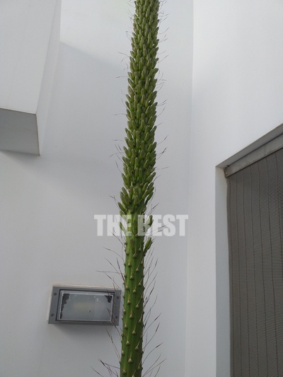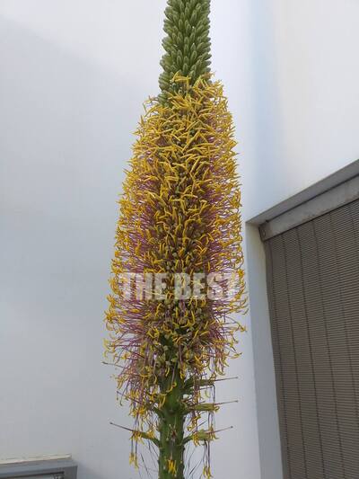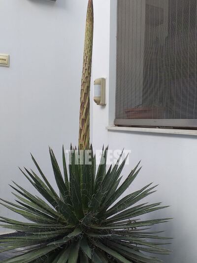 Eπί 17 χρόνια είχε μόνο τα χαμηλά μυτερά φύλλα, με συνολικό ύψος μόλις 0,45m. Μέσα σε ένα μόλις μήνα, "έβγαλε από την καρδιά του" αυτόν τον πανύψηλο κορμό με ύψος 4,50 μέτρα και τον άνθισε!