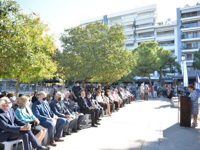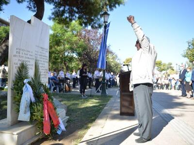 Τιμάμε τους απελευθερωτές της πόλης. Τους μαχητές και τις μαχήτριες του 12ου Συντάγματος του ΕΛΑΣ, τους αγωνιστές και τις αγωνίστριες της ΕΑΜικής Αντίστασης, της ΕΠΟΝ. Εκείνους κι εκείνες που πάλεψαν με το όπλο, με την προκήρυξη, κράτησαν ηρωική στάση στα κρατητήρια και στα εκτελεστικά αποσπάσματα στη βίλα Λυμπερόπουλου, στο κτήμα Μουρτζούχου, στις φυλακές Μαργαρίτη, στο μπλόκο των Προσφυγικών, στα Ψηλαλώνια.