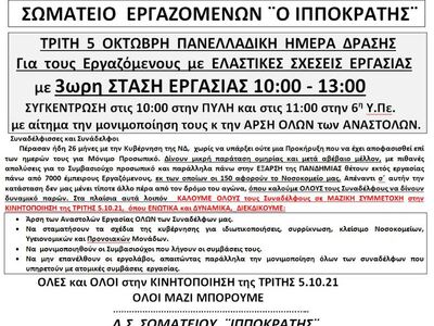 Η συγκέντρωση θα γίνει στις 10 το πρωί της Τρίτης (05/10) έξω από τα γραφεία της 6ης ΥΠΕ στην Πάτρα.