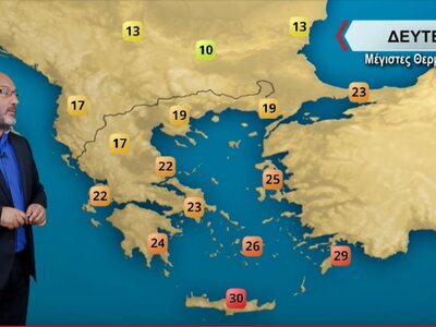 Η κακοκαιρία "Αθηνά" βρίσκειται σε εξέλιξη και ήδη από χθες επισκέπτεται τη Δυτική Ελλάδα, ωστόσο σύμφωνα με τον μετεωρολόγο της ΕΡΤ 3 Σάκη Ανραούτογλου, την Δευτέρα ο υδράργυρος στην Κρήτη θα δείξει 30 βαθμούς!