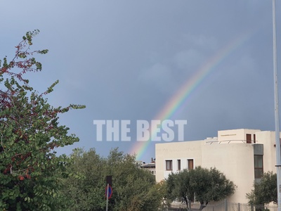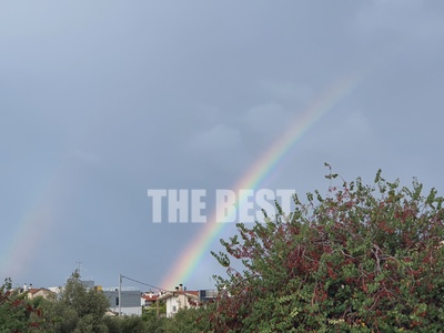 Ένα εντυπωσιακό ουράνιο τόξο έκανε την εμφάνισή του το πρωί της Τρίτης, ανάμεσα στα σύννεφα που η "Αθηνά" επιμένει να περιστρέφει πάνω και από τη Δυτική Ελλάδα. Το τεραστίων διαστάσεων ουράνιο τόξο ξεκινούσε από τα Βραχνέικα και εκτεινόταν εως τη Ναύπακτο. Τα άκρα του ήταν έντονα ενώ στο πάνω μέρος του ήταν πιο αδύναμο σε ένταση.