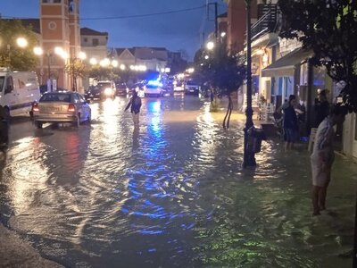 Την Κεφαλονιά «επισκέφθηκε» ο «Μπάλλος» και, μάλιστα, με τις χειρότερες διαθέσεις. Από τις έντονες βροχοπτώσεις που προκάλεσε η κακοκαιρία το ποτάμι που διασχίζει το Ληξούρι υπερχείλισε, με αποτέλεσμα να πλημμυρίσει η πόλη.