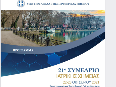 Το 21ο Συνέδριο Ιατρικής Χημείας θα πραγματοποιηθεί στα Ιωάννινα στις 22 και 23 Οκτωβρίου 2021 στο Επιστημονικό και Τεχνολογικό Πάρκο Ηπείρου, συνέχεια των προηγούμενων είκοσι συνεδρίων του προγράμματος "Ιατρική Χημεία".