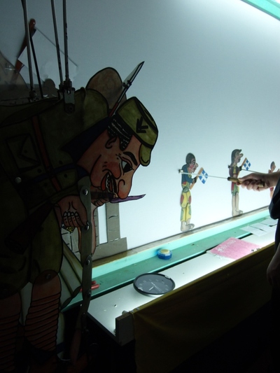 Τα ηχητικά ντοκουμέντα της Εθνικής Επετείου πλαισιώνουν την φωνή του καραγκιοζοπαίχτη Χρήστου Πατρινού. Η συνέχεια επί της σκηνής στο «Περί Σκιών».