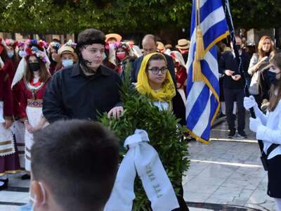 Δύο αριστούχοι από το Πέμπτο Γυμνάσιο Πατρών, η Μάρα Δημητροπούλου και ο Σπύρος Γουρδούπης ήταν τα παιδιά που παρέδωσαν σήμερα τα προς κατάεθση στεφάνια στους πολιτικούς που παραβρέθηκαν στην πλ. Όλγας προκειμένου να τιμήσουν την Εθνική μας επέτειο της 28ης Οκτωβρίου 1940.