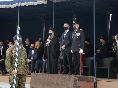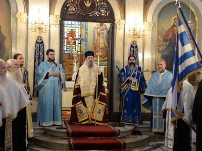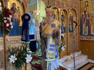 Μέ λόγια συγκινητικά ἀνεφέρθη ὁ Μητροπολίτης στήν ἑορτή τῆς Ἁγίας Σκέπης τῆς Θεοτόκου καί τῆς θαυμαστῆς προστασίας τῆς Παναγίας μας στό Ἒθνος μας πάντοτε καί ἐν προκειμένῳ κατά τίς ἡρωϊκές μάχες καί τίς νίκες τῶν Ἑλλήνων κατά τό Ἒπος τοῦ ’40 καί κατά τήν Γερμανική κατοχή. Ἀνέγνωσε κείμενα ὂχι μόνο Ἑλλήνων Στρατιωτῶν τῆς ἐνδόξου ἐκείνης περιόδου, ἀλλά καί ξένων, ὡς τοῦ Ἂγγλου Πρεσβευτοῦ Michael Ralairet πού βεβαιώνουν τήν θαυμαστή βοήθεια καί θαυματουργική παρέμβαση τῆς Παναγίας μας στά πεδία τῶν μαχῶν, ὃπου ὀφθαλμοφανῶς τήν ἒβλεπαν οἱ Στρατιῶτες νά τούς ἐμψυχώνῃ καί νά τούς ὁδηγῇ.