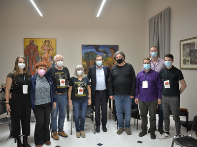 Στην επίσκεψη παρευρέθηκαν ο Δήμαρχος της Πάτρας Κώστας Πελετίδης, η πρόεδρος του Πολιτιστικού Οργανισμού Κατερίνα Γεροπαναγιώτη και ο αντιπρόεδρος στο Δ.Σ. του Πολιτιστικού Οργανισμού Κ. Παπαφιλίππου.