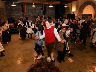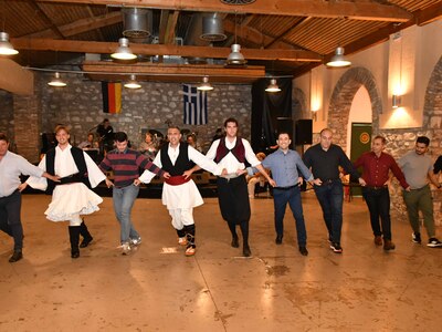 Η βραδιά έκλεισε στην αίθουσα «Αίγλη» της Veso Mare, στην Ακτή Δυμαίων. Εκεί αντάμωσαν μουσικά και χορευτικά τα μέλη του συγκροτήματος από το Μπάλινγκεν, το Χορευτικό Τμήμα του Πολιτιστικού Οργανισμού του Δήμου Πατρέων και η λαϊκή του ορχήστρα, με τον πολυχώρο να μετατρέπεται σε «κύτταρο» ερασιτεχνικής και δημιουργικής έκφρασης.
