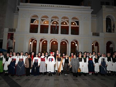 Τα 45 μέλη του Γερμανικού συγκροτήματος παρουσίασαν και χορούς & τραγούδια έξω από το Δημοτικό Θέατρο «Απόλλων» καθώς και στην αίθουσα «Αίγλη» της Veso Mare