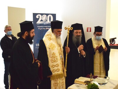 Την τελετή του αγιασμού τέλεσαν οι σεβασμιότατοι Μητροπολίτες Πατρών, Χρυσόστομος, Αιγιαλείας και Καλαβρύτων, Ιερώνυμος, οι οποίοι, με τη σειρά τους, παρέπεμψαν στη συμβολή της Ιεράς Μονής της Αγίας Λαύρας αλλά και του Μεγάλου Σπηλαίου στον επαναστατικό αγώνα των Ελλήνων. Ακολούθησε ξενάγηση από τον αρχαιολόγο Γιάννη Μόσχο, ο οποίος επιμελήθηκε τον μουσειογραφικό σχεδιασμό της έκθεσης.