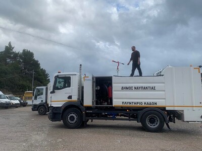 Αναλυτικότερα και όπως αναφέρει σχετική ανακοίνωση, ο Δήμος Ναυπακτίας έχει πλέον στη διάθεσή του ένα καινούργιο όχημα πλύσης κάδων χωρητικότητας 4.000 λίτρων με δυνατότητα πλύσης με ζεστό νερό σε υψηλή πίεση και απολύμανσης των κάδων με ειδικό υγρό ενώ, αναμένονται άμεσα τέσσερα νέα απορριμματοφόρα και ένα γκρέιντερ.