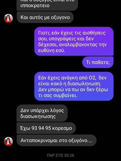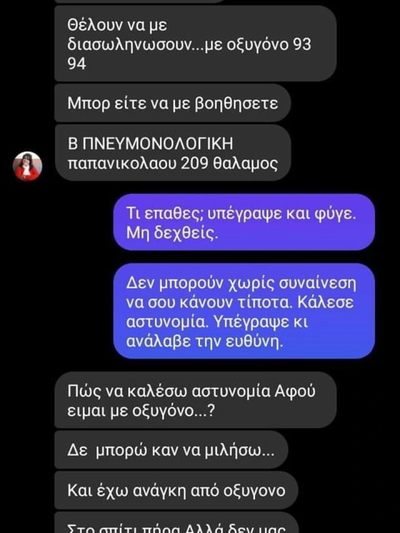 Πασχαλίνα: Κύριε Τ... Είμαι Παπανικολάου. Θέλουν να με διασωληνώσουν με οξυγόνο 93-94. Μπορείτε να με βοηθήσετε; B Πνευμονολογική...