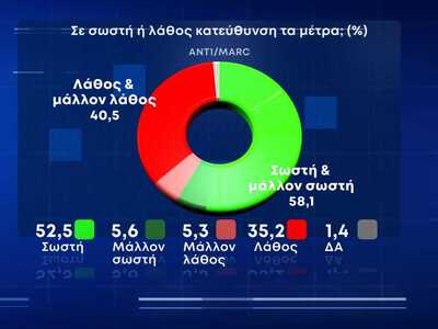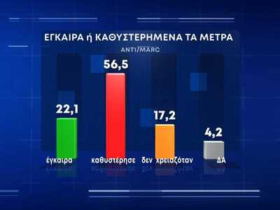Επιπλέον, πάνω από τους μισούς και συγκεκριμένα το 56,5% των ερωτηθέντων, εκτιμά ότι η κυβέρνηση άργησε να πάρει τα μέτρα.