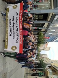 Ο Εμπορικός & Εισαγωγικός Σύλλογος Πατρών με ανακοίνωσή του "εκφράζει τις ευχαριστίες του στους συναδέλφους που στην συντριπτική τους πλειοψηφία με το κλείσιμο των καταστημάτων τους και την μαζική τους συμμετοχή στη συγκέντρωση και πορεία έστειλαν ηχηρό μήνυμα αντίδρασης και αγωνιστικής απάντησης στα μέτρα που εξοντώνουν τις μικρομεσαίες επιχειρήσεις.