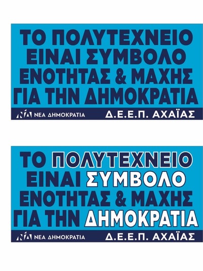Η Διοικούσα Επιτροπή Εκλογικής Περιφέρειας Αχαΐας της Νέας Δημοκρατίας σε μήνυμά της για την 48η επέτειο του Πολυτεχνείου υπογραμμίζει τα εξής: