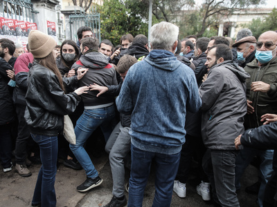 Νωρίτερα, νεαροί που βρίσκονταν στο Πολυτεχνείο δεν επέτρεψαν σε επιτροπή της Βουλής να καταθέσει στεφάνι. Η ένταση επικράτησε λίγο πριν από τις 09:00 το πρωί, όταν στο σημείο βρέθηκαν οι βουλευτές της Νέας Δημοκρατίας, Χαράλαμπος Αθανασίου και Χάρης Θεοχάρης.