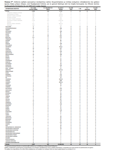 Εκ των 380 δειγμάτων με στελέχη ειδικού ενδιαφέροντος, όλα αφορούν στο στέλεχος Delta (Πίνακας 3). Ένα εκ των 380 στελεχών Delta αφορά στο στέλεχος ΑΥ.4.2, το οποίο εντοπίστηκε σε δείγμα κρούσματος στην Περιφερειακή Ενότητα του Λασιθίου.